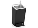 Accessible pedestal hand basin from the Black Series, designed for functionality, safety, and elegance in professional settings. Crafted from matte black lacquered stainless steel, it combines durability with a refined design. The foot-operated push-button operation ensures hygienic and efficient use. Suitable for hot and cold water, it can also be connected to cold water only or a regulated mix via the included non-return valve.