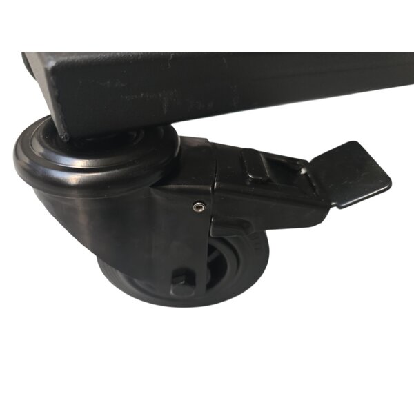 - Black wheels of 100mm diameter, 2 of which have brakes