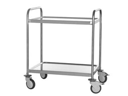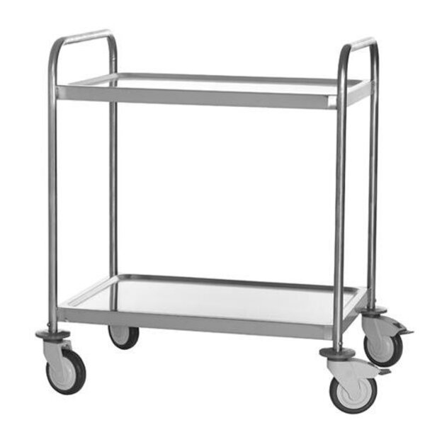 Stainless steel serving trolley with 2 levels